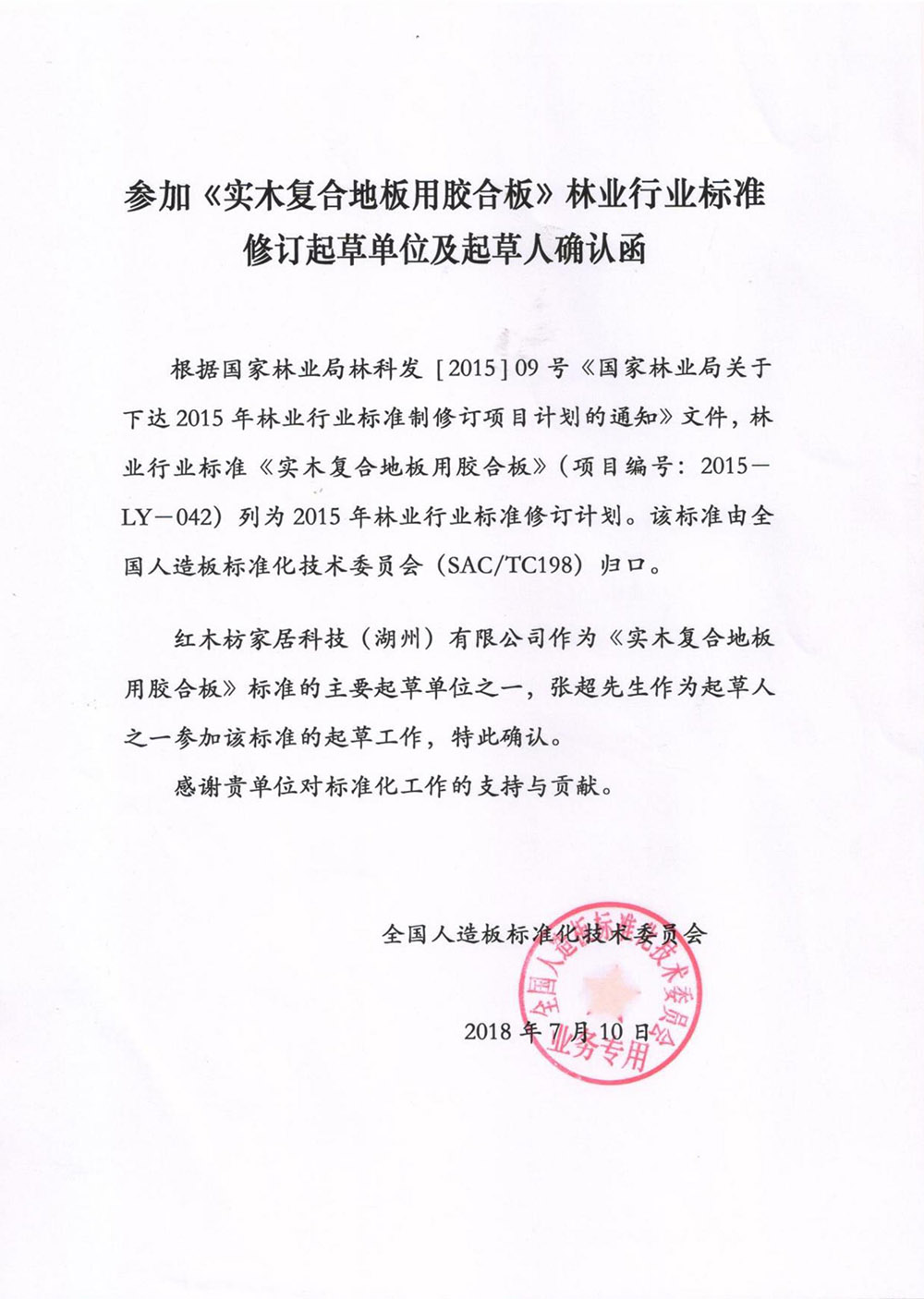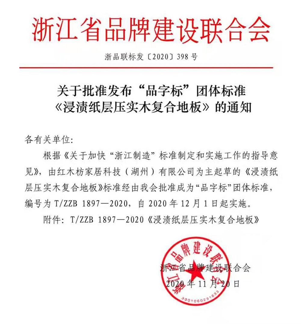 紅木枋地板于2013年投資1000萬(wàn)在蘇州市吳江區成立了蘇州市紅枋家居有限公司,并于2019年3月將蘇州公司遷移到浙江湖州南潯區,成立紅木枋家居科技(湖州)有限公司,公司2019年被湖州市政府評為“南太湖精英計劃企業(yè)”專(zhuān)業(yè)生產(chǎn)銷(xiāo)售其核心專(zhuān)利《高穩定多層復合地板》——科技新實(shí)木地板(國標名:浸漬紙層壓飾面多層實(shí)木復合地板)。是目前國內木地板行業(yè)科技創(chuàng )新能力較強、發(fā)展速度最快的制造企業(yè)之一,公司為中國木材流通協(xié)會(huì )會(huì )員單位、南潯地板協(xié)會(huì )理事單位,為《浸漬紙層壓飾面多層實(shí)木復合地板》GB/T24507標準主要起草單位,《實(shí)木復合地板用膠合板》行業(yè)標準LY/T1738主要起草單位,《負氧離子地板》協(xié)會(huì )標準起草單位,獨家擁有《高穩定多層復合地板》專(zhuān)利技術(shù)。