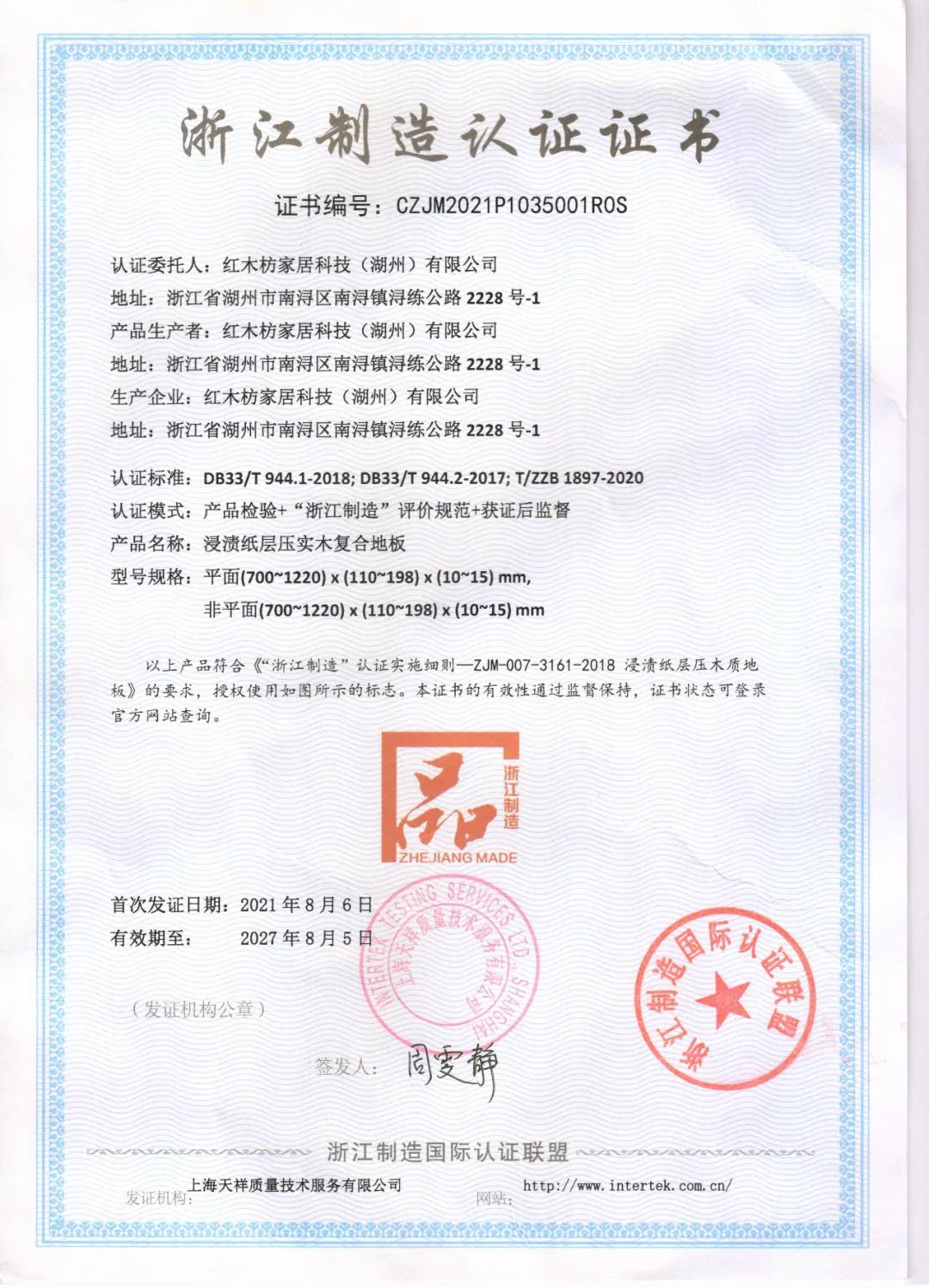 熱烈祝賀紅木枋地板通過(guò)“浙江制造”官方認證