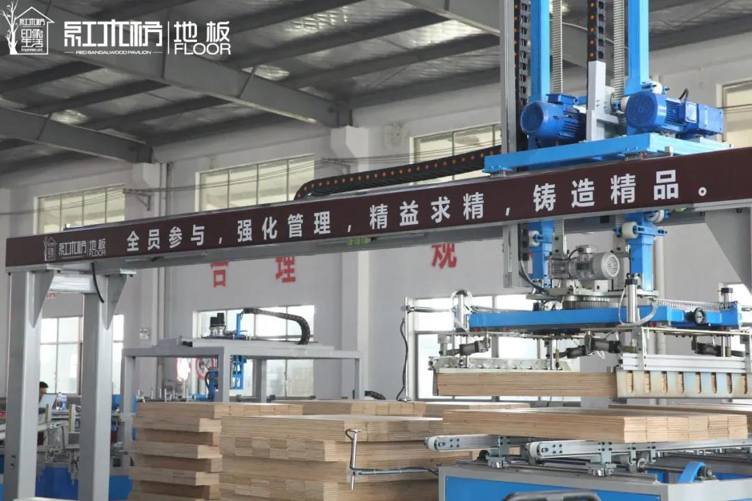 紅木枋地板生產(chǎn)硬件在公司喬遷新生產(chǎn)基地的同時(shí),再度更新?lián)Q代全面升級。據紅木枋家居董事長(cháng)張超透露,隨著(zhù)生產(chǎn)設備的升級換代,2019年,紅木枋地板將達到一個(gè)全新的工藝水平,正式邁入工業(yè)制造4.0時(shí)代。參觀(guān)紅木枋全新的生產(chǎn)車(chē)間,可以看到在紅木枋地板從開(kāi)槽機口進(jìn)入,后通過(guò)傳動(dòng)輥臺輸送到自動(dòng)化鋸切線(xiàn)、封蠟線(xiàn)、包裝線(xiàn)等,最后包裝完畢的成品,又被機械臂整齊堆放成一摞,這條更富科技更高效率的生產(chǎn)線(xiàn)已初具雛形。